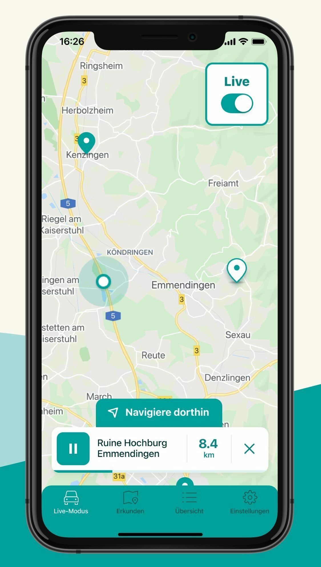 Der Live-Modus hat eine zusätzliche, ebenfalls vielfach gewünschte Funktion erhalten. Ab sofort ist es möglich, sich direkt aus dem Live-Modus zu dem jeweiligen POI navigieren zu lassen.