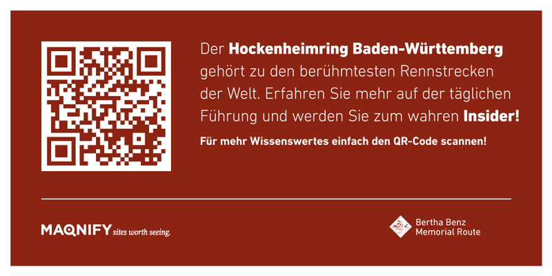 MAQNIFY hat speziell für die Bertha Benz Memorial Route eigene QR-Tafeln entwickelt, die an 31 Sehenswürdigkeiten in 18 Städten und Gemeinden entlang der Route angebracht wurden.