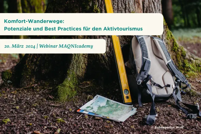 MAQNIFY bietet mit der Webinar-Reihe "MAQNIcademy – Wissen kostenlos, aber nicht umsonst“ den nächsten Impuls zum Thema „Komfort-Wanderwege: Potenziale und Best Practices im Aktivtourismus“ an.