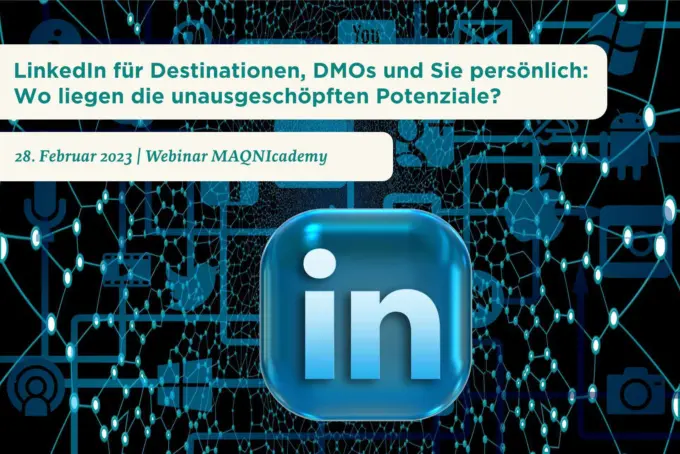 MAQNIFY bietet mit der Webinar-Reihe „MAQNIcademy – Wissen kostenlos, aber nicht umsonst“ den nächsten Impuls zum Thema „LinkedIn für Destinationen, DMOs und Sie persönlich – Wo liegen die Potenziale“ an.