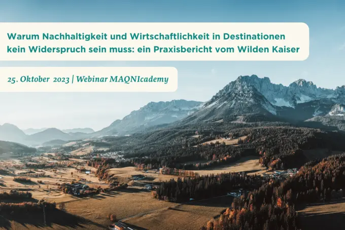 MAQNIFY bietet mit der Webinar-Reihe „MAQNIcademy – Wissen kostenlos, aber nicht umsonst“ den nächsten Impuls zum Thema „Warum Nachhaltigkeit und Wirtschaftlichkeit in Destinationen kein Widerspruch sein muss: ein Praxisbericht vom Wilden Kaiser“ an.